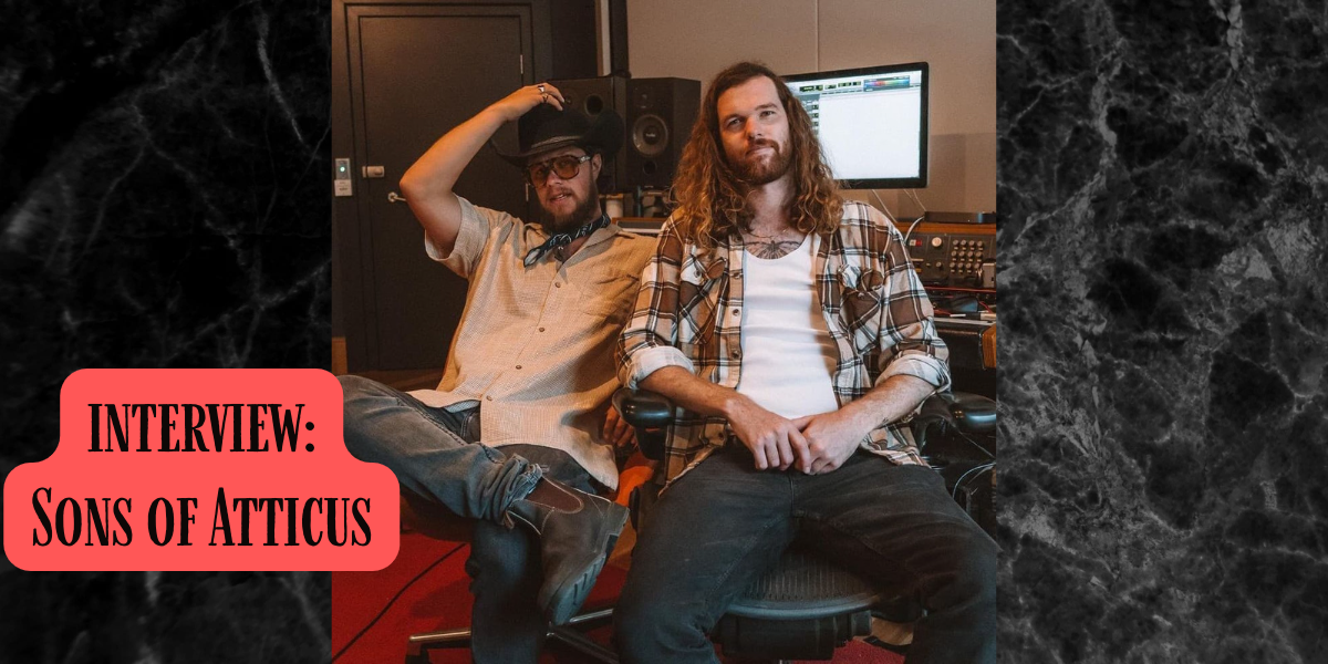 Dylan Wright and Matt Joyce are Sons of Atticus, a duo who cannot be said to based in any one place as its members now live in different places. But as anyone who sees them play live knows, this does not affect their musical affinity one bit. Sons of Atticus released the album Jacks Motel in 2021, single ‘Sad Songs’ earlier this year and ‘Sore Eyes’ recently. We spoke recently about how they came to play music together, about the band’s name and their new song, and it would be hard to find a pair easier or more enjoyable to interview. You can watch that chat on YouTube, or listen in Soundcloud or on the podcast.